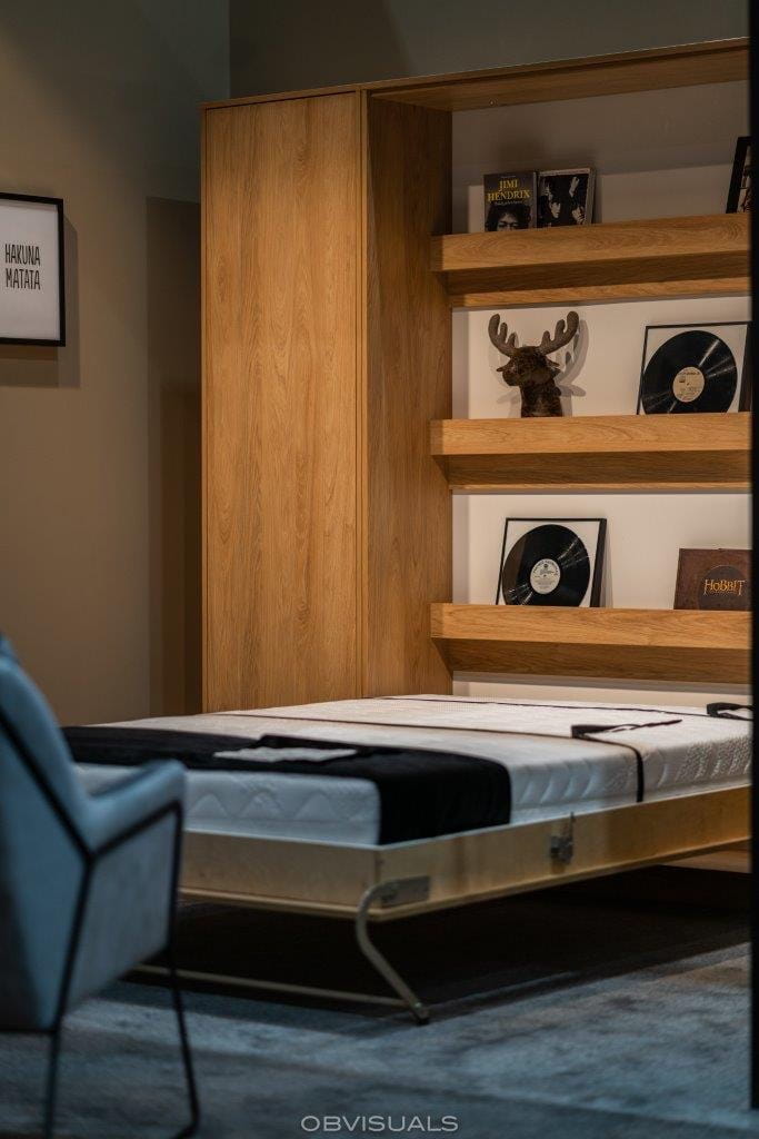 The Genius collection combines modern design, functionality, and durability. The Genius wall beds, made from 25 mm thick furniture board, guarantee maximum stability and longevity. Thanks to the use of gas struts, opening and closing the wall beds is extremely easy, making them suitable even for people with less physical strength. Each wall bed is available in two sizes (for mattresses 120 cm and 140 cm wide), allowing for comfortable sleeping even for two people.