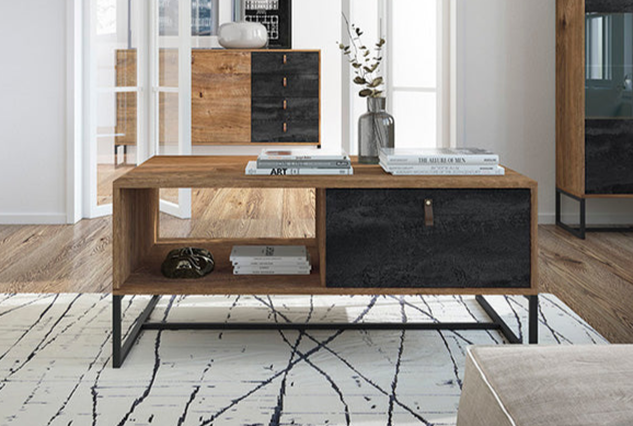 Dark Coffee Table - Modern Table with Single Drawer