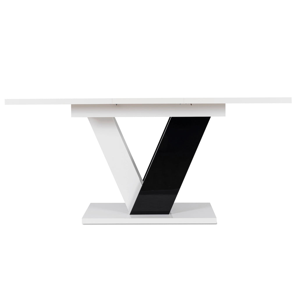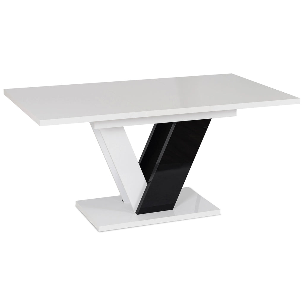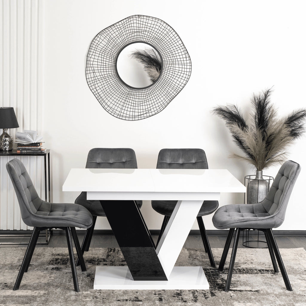 The Elite CLARK Dining Table is a sleek, modern statement piece, perfect for elevating any contemporary dining space. With its high-gloss white finish and striking black V-shaped base, this table brings a sophisticated contrast to your interior.