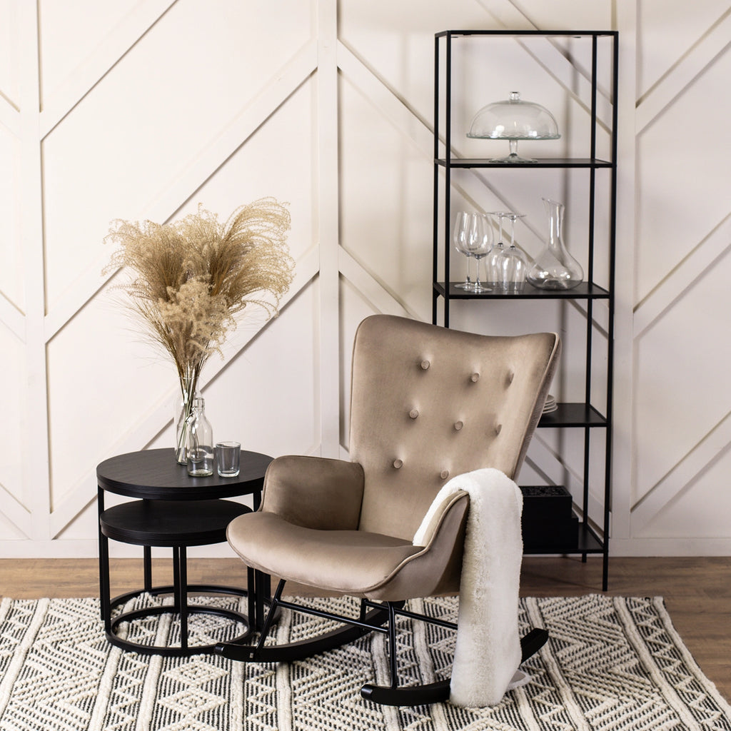 Elite ELIS Beige Velvet Rocking Chair – Soft Elegance and Soothing Motion