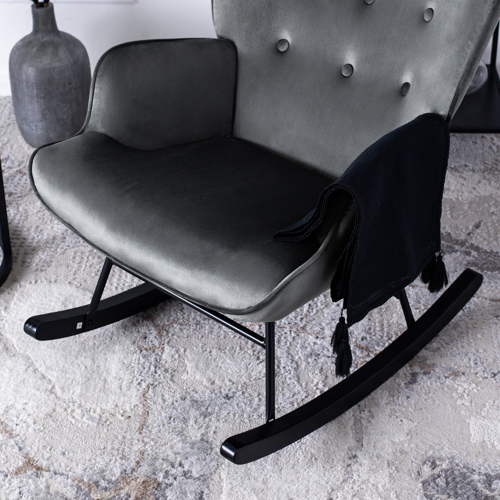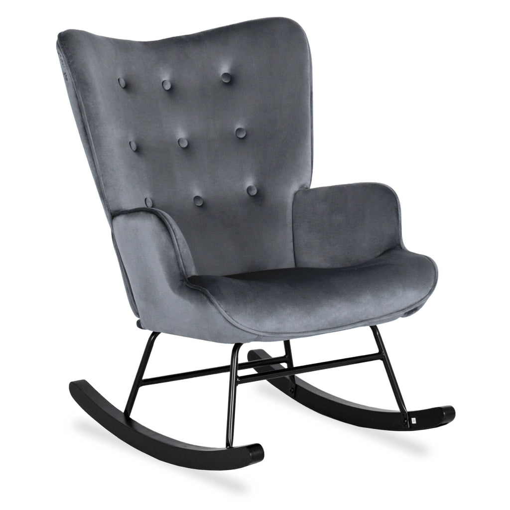 Elite ELIS Grey Velvet Rocking Chair – Contemporary Comfort with Gentle Motion