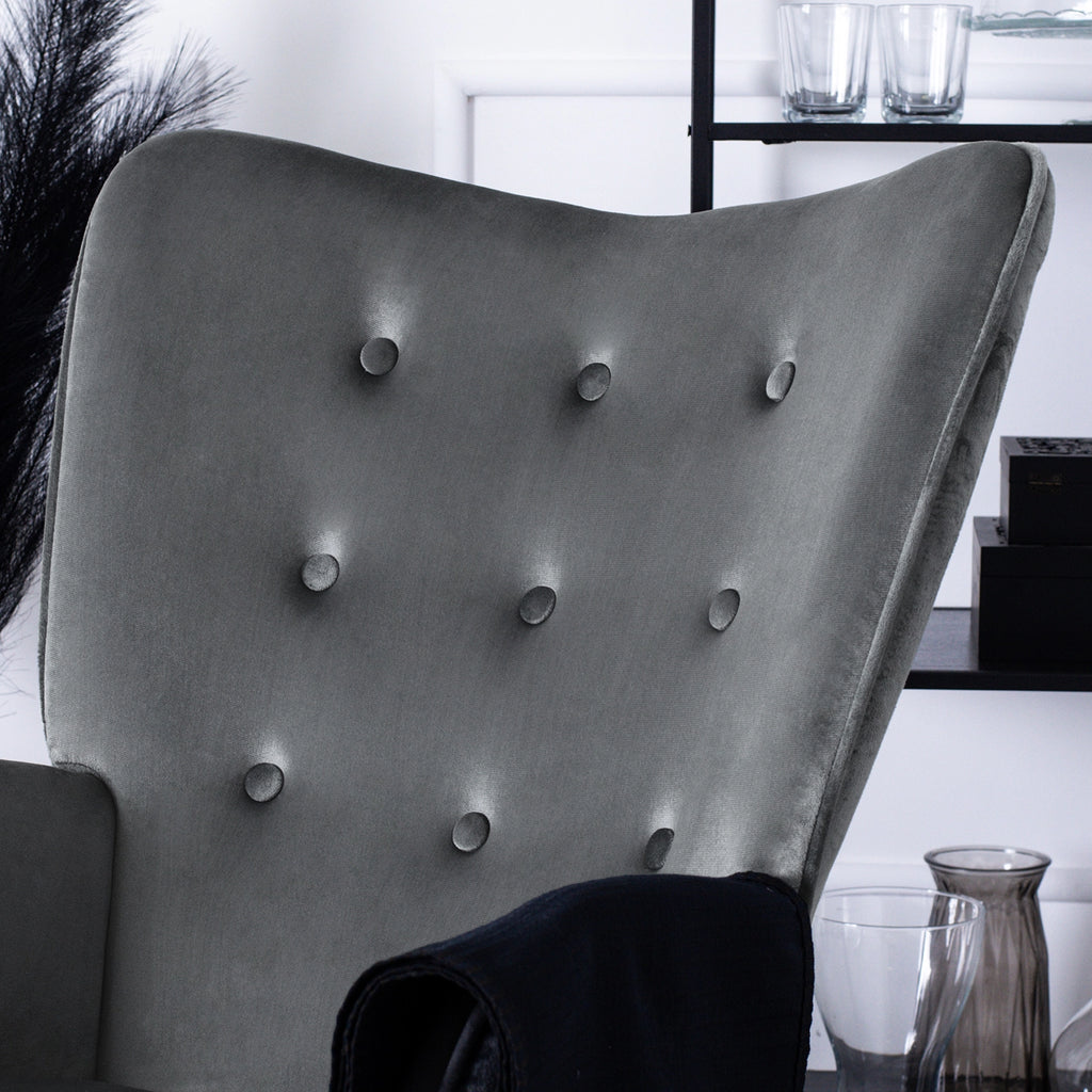 ✔ Soft Velvet Finish – Upholstered in luxurious grey velour for a smooth and stylish look.