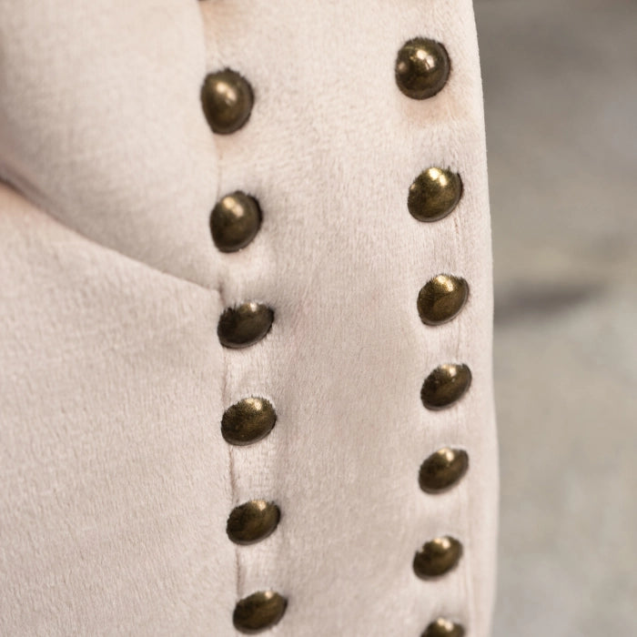 Gold decorative studs on the front of the armrests, adding a touch of elegance