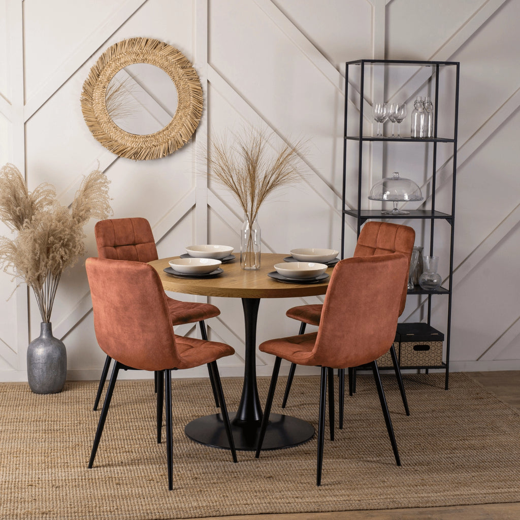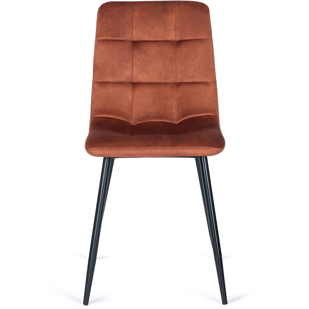 Bring warmth and sophistication to your space with the Elite PERU Rust Velvet Chair, a stylish combination of modern aesthetics and plush comfort. With its rich rust-colored velvet upholstery, ergonomic design, and sturdy black metal frame, this chair is a perfect addition to dining rooms, offices, or lounge areas.