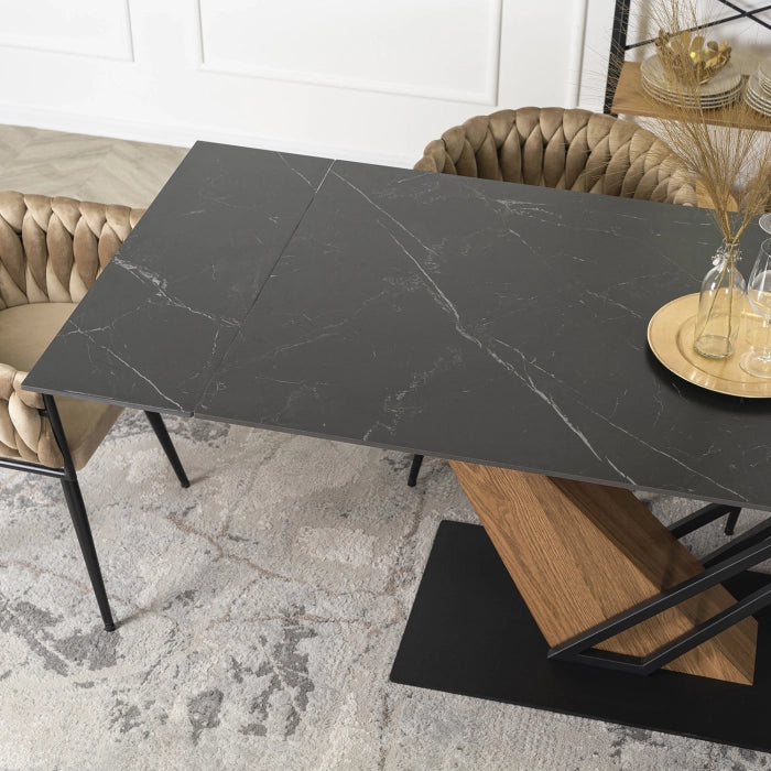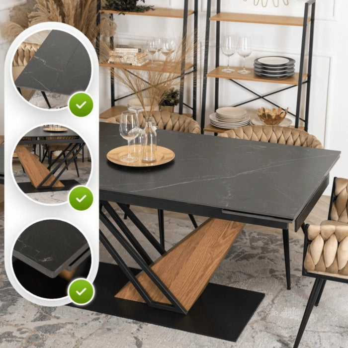 Extendable Dining Table REX – Black Marble/Walnut (160–220 cm)