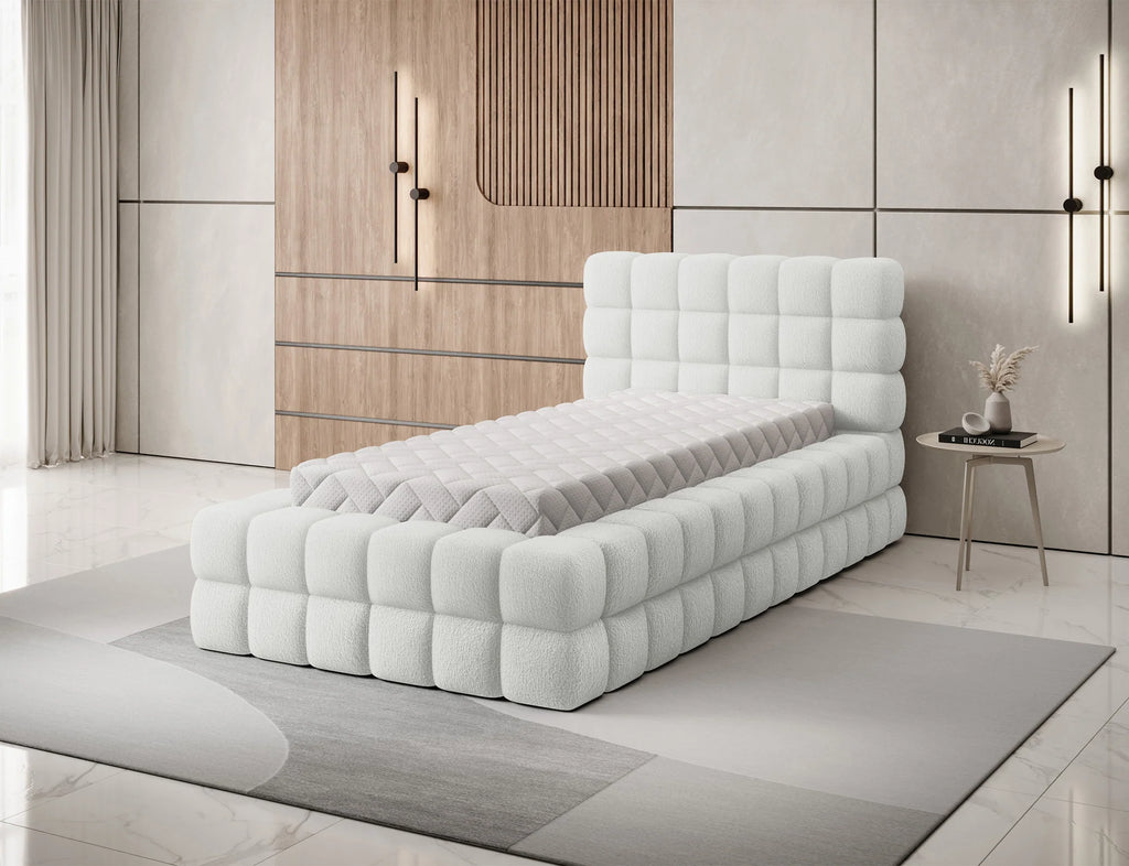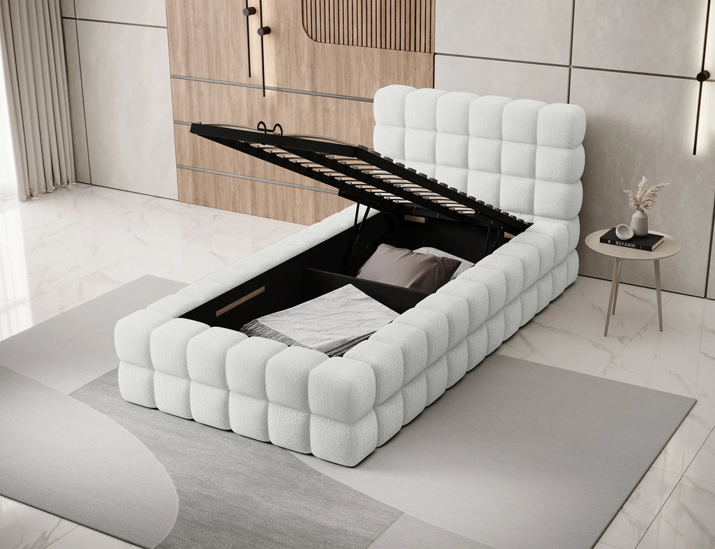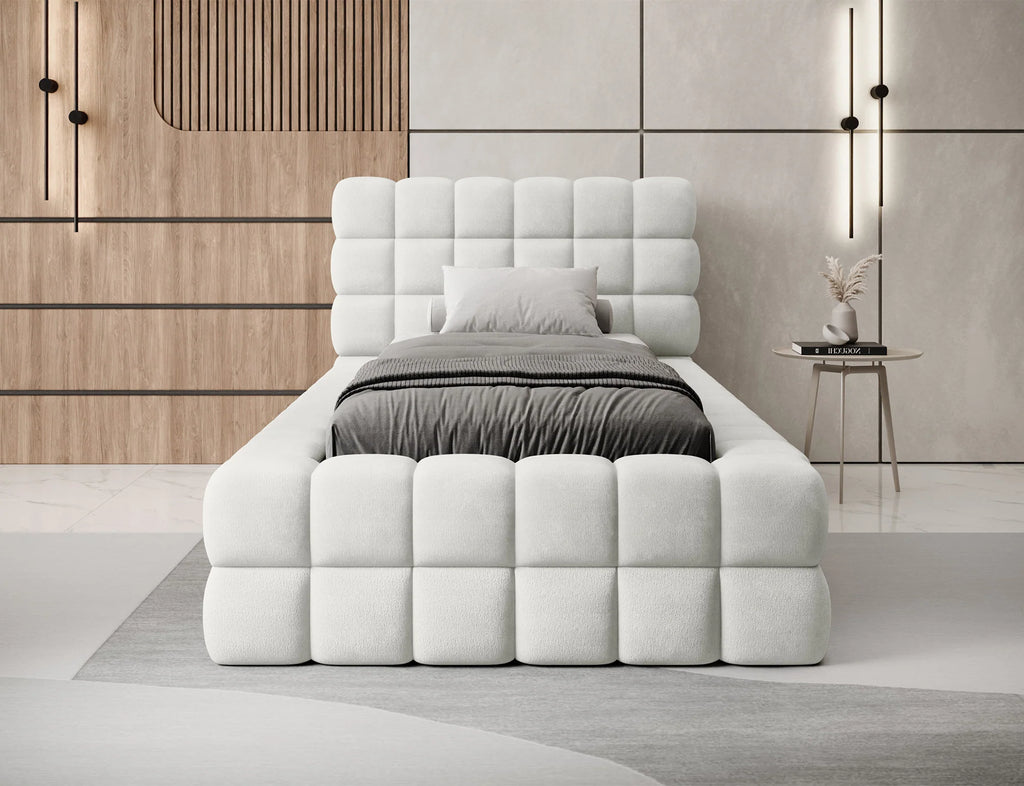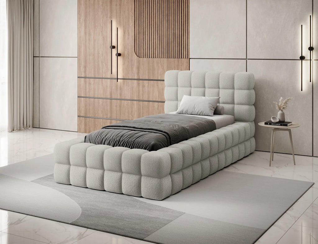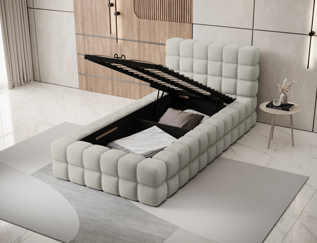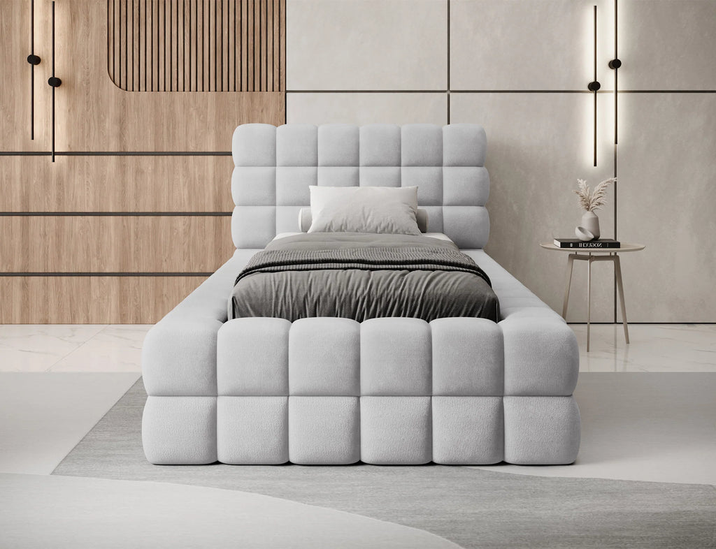 The Dizzle upholstered bed is a perfect choice for those who value both comfort and elegance. Ideal for children, teenagers, or guests, it combines functionality with a cozy look. The 90x200 cm model with bedding storage offers a comfortable place for sleep and relaxation, while its soft, solid form adds warmth to any interior.