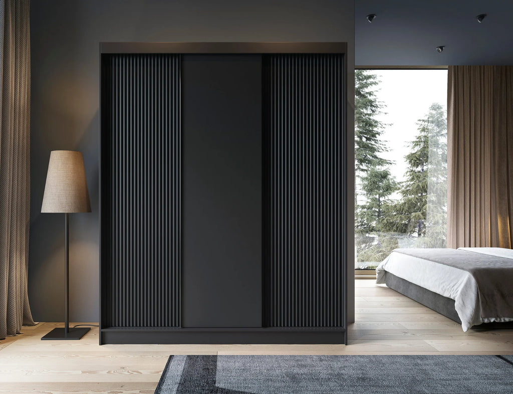 Prescco Three-Door Sliding Wardrobe – Black Matte