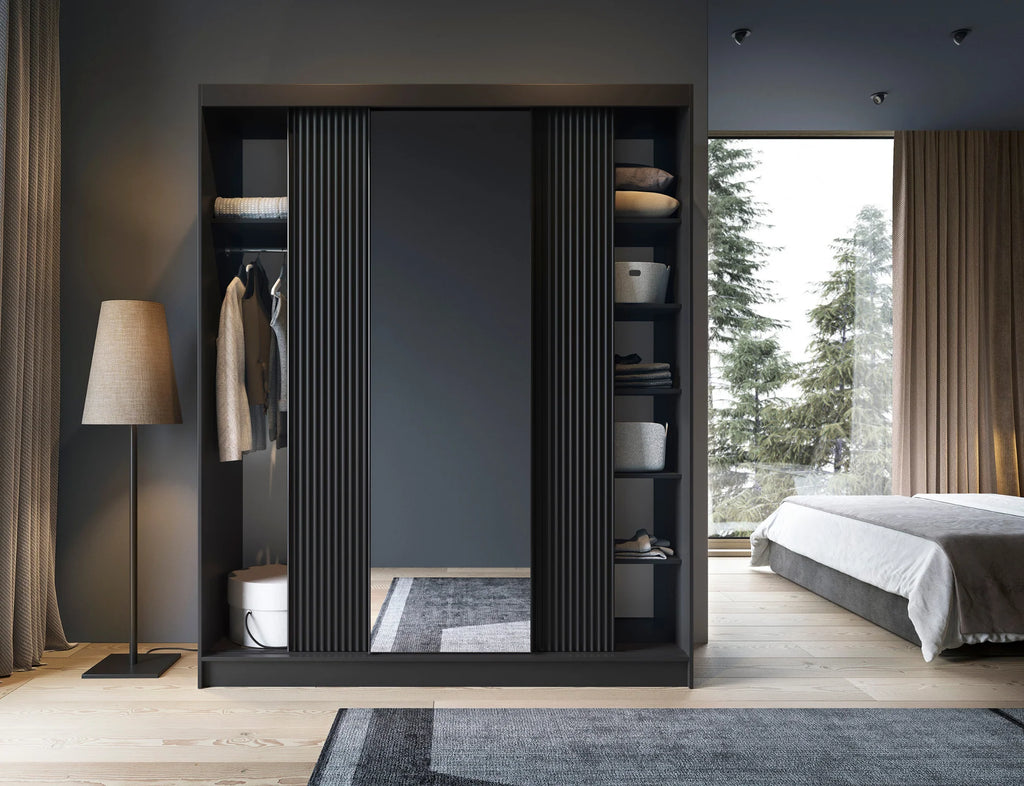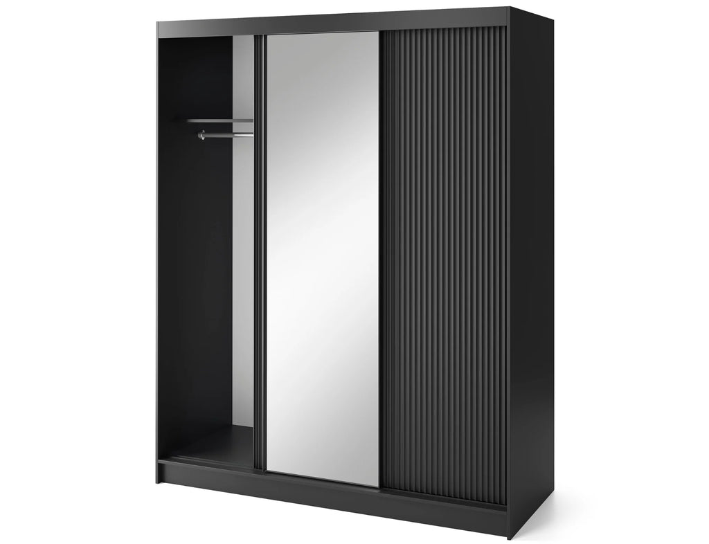 Prescco Three-Door Sliding Wardrobe with Mirror – Black Matte with Mirror