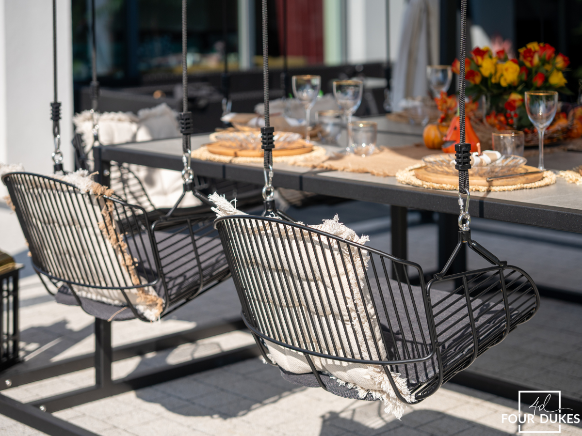 Experience the perfect blend of elegance, comfort, and functionality with the Four Dukes Hybrid SwingTable Collection. These innovative outdoor furniture sets combine the practicality of dining tables with the relaxing pleasure of swings, offering a unique solution to elevate your garden, terrace, or patio. Each piece is thoughtfully designed to provide both a chic dining area and a serene spot for unwinding, making it ideal for any outdoor space.