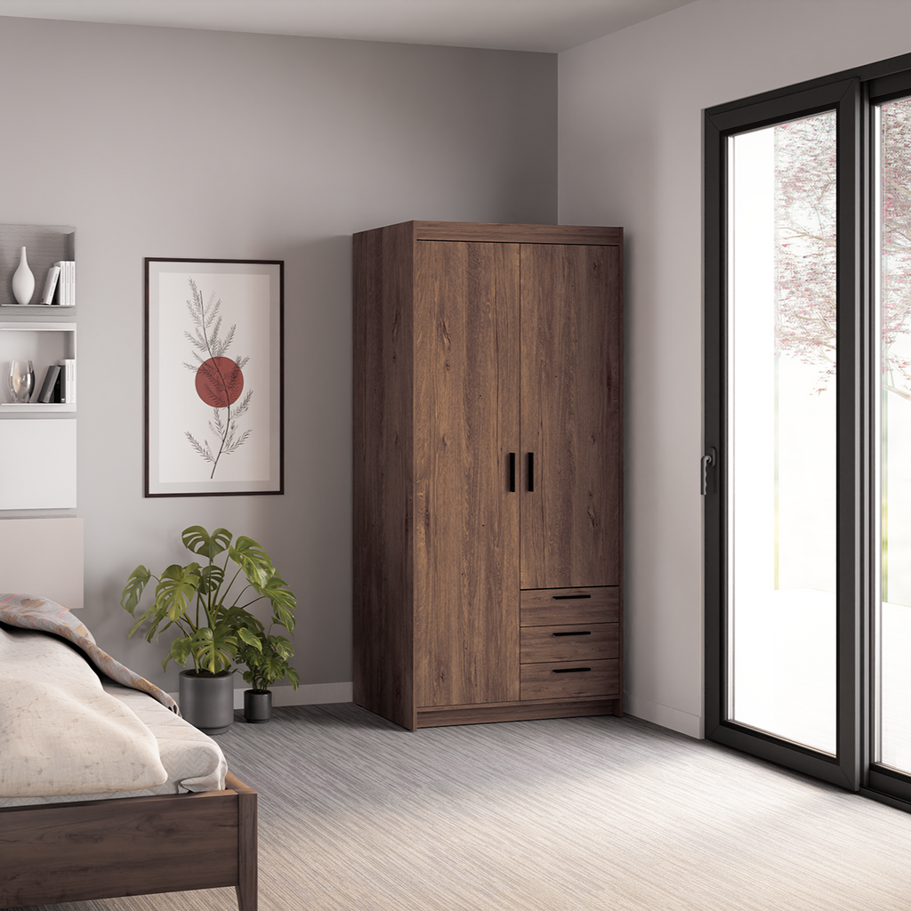 ✔ Storage: 2 doors, 3 drawers, 3 shelves, 1 hanging rod