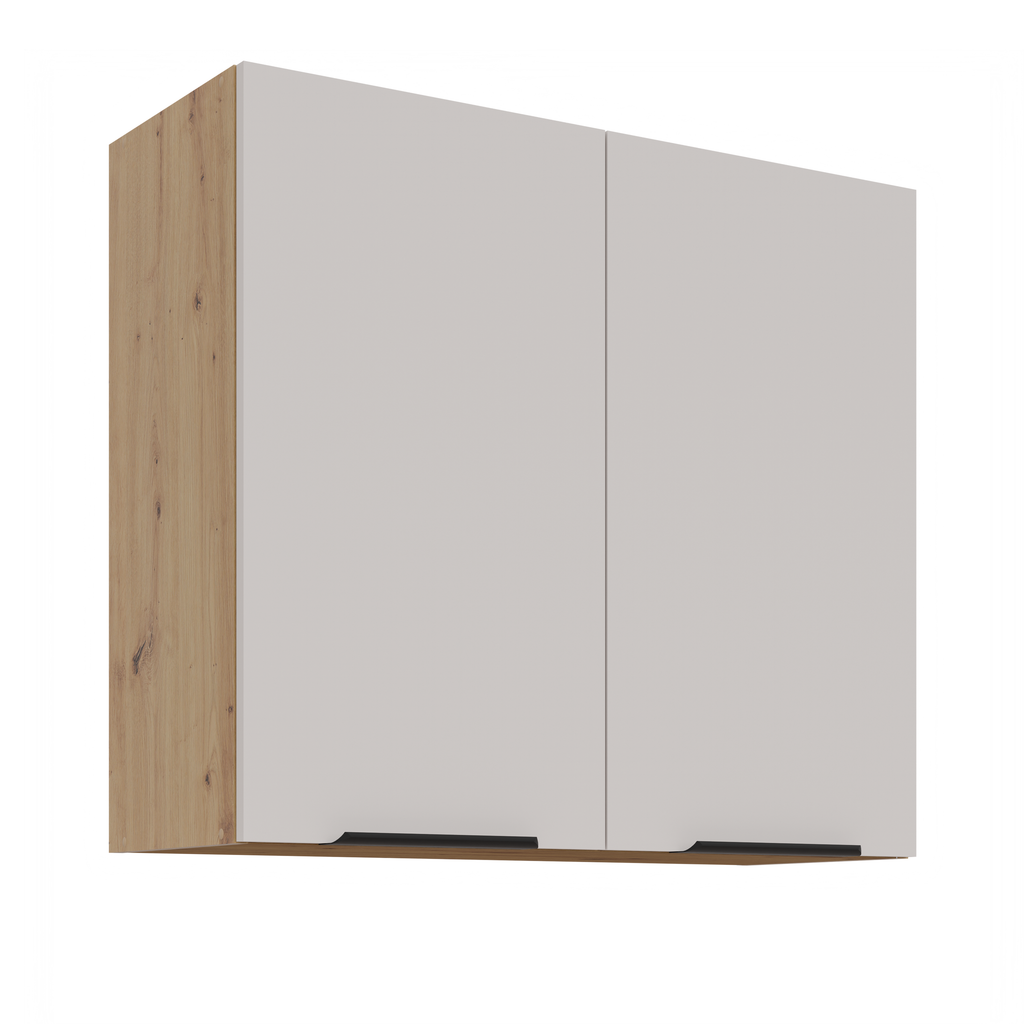 The LE Solea 80 G-72 2F wall cabinet offers generous double-door storage with two internal shelves. Perfect for organising dishes, dry goods or glassware, it features a sleek, soft-close system and elegant two-tone finish.