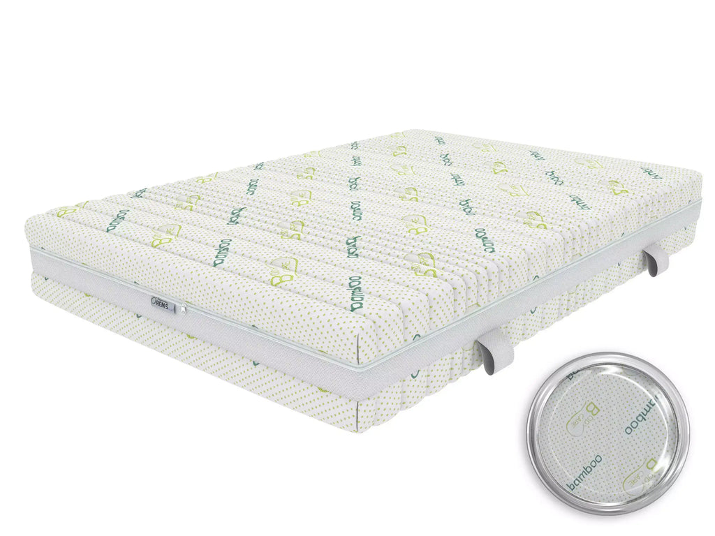 Interior: High-resilience cold foam HR (16.5 cm) + thermoelastic Visco Memory Foam V5018 (7 cm) with a massaging profile.