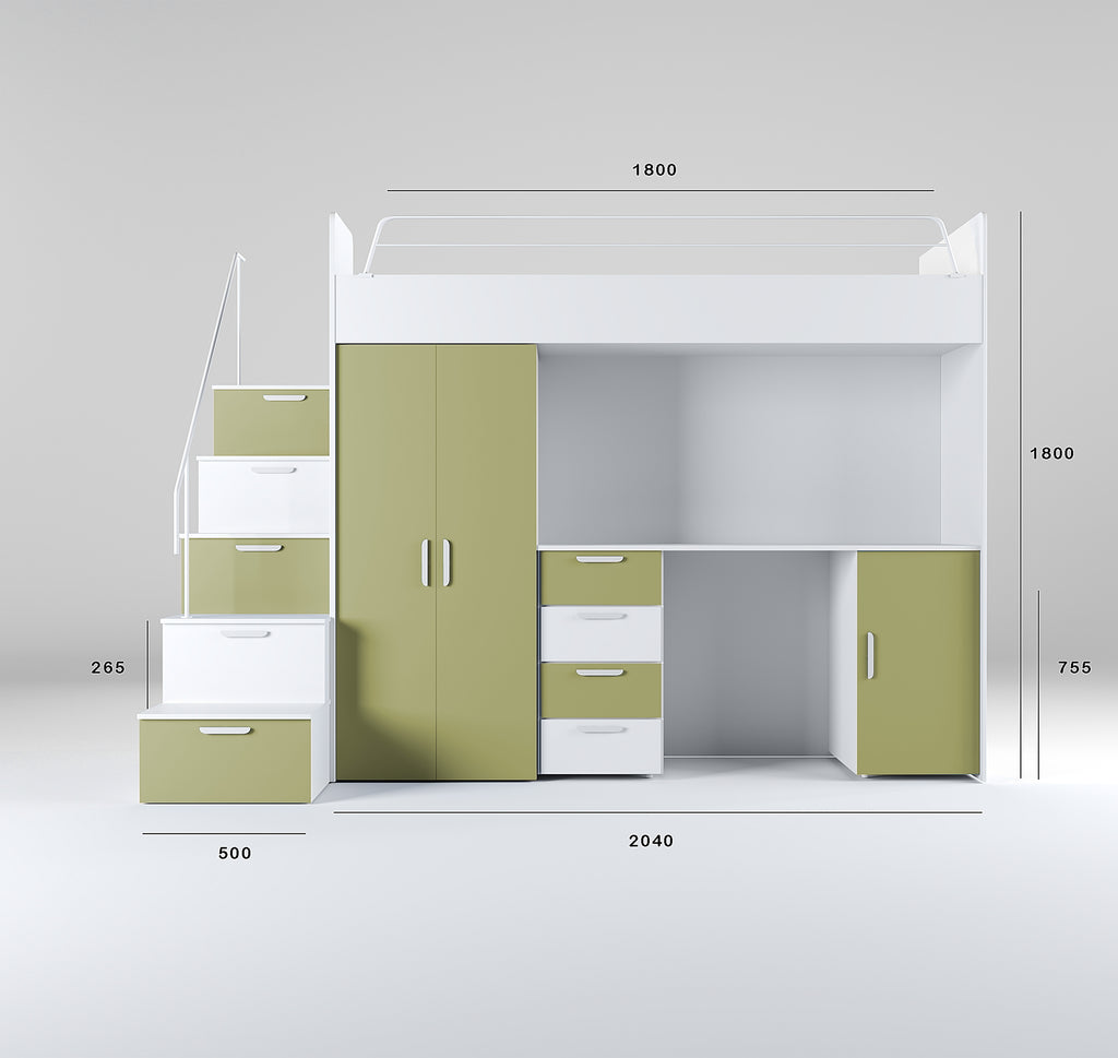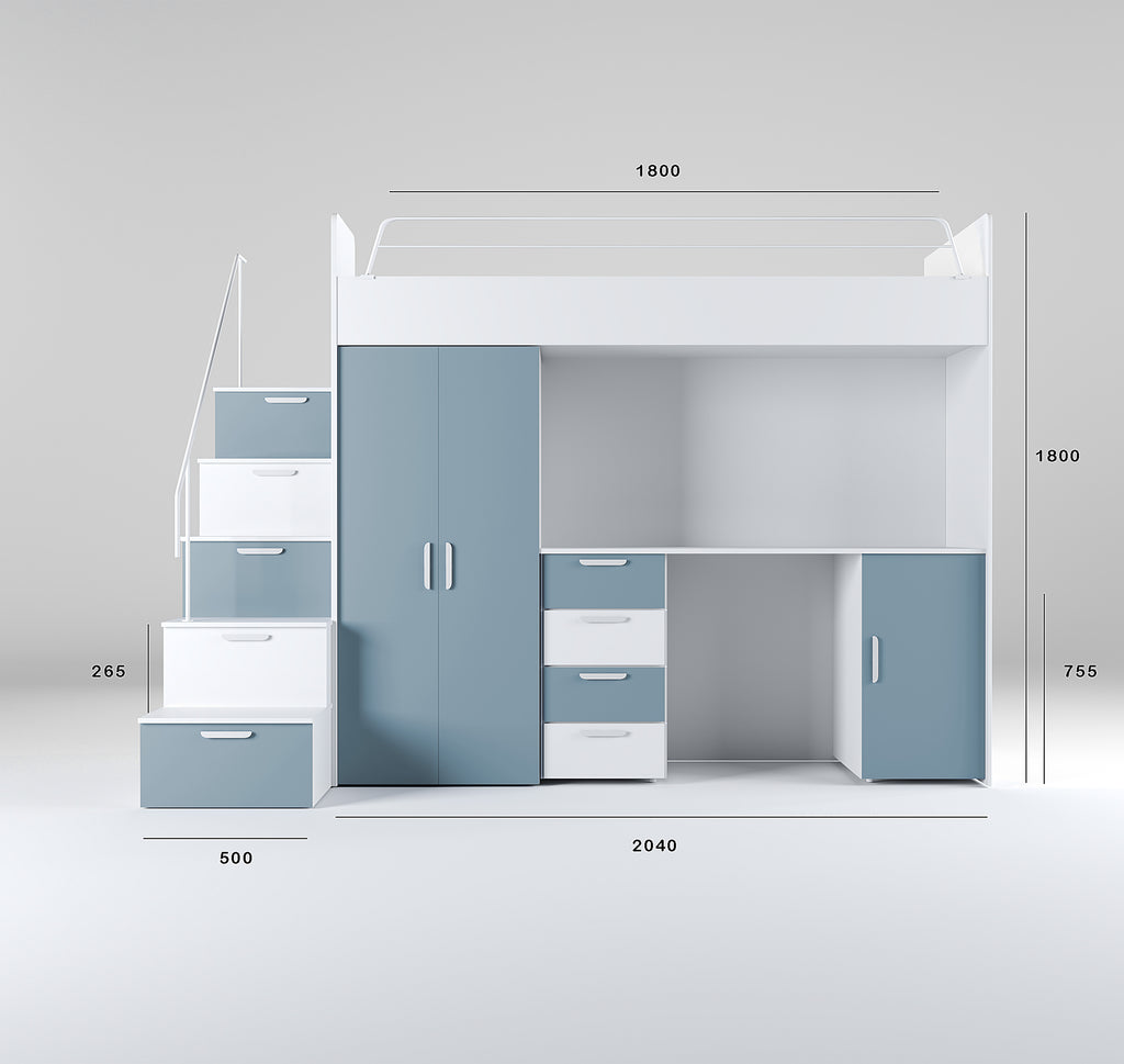 NEW PARADISE 4 – Loft Bed with Desk and Stairs