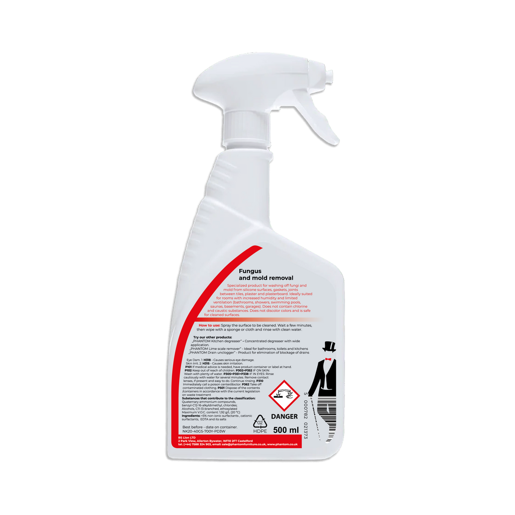 Specialized product for washing off fungi and mold. Ideally suited for rooms with increased humidity and limited ventilation (bathrooms, showers, swimming pools, saunas, basements, garages). Does not contains chlorine and caustic substances. Does not discolor colors and is safe for cleaned surfaces.
