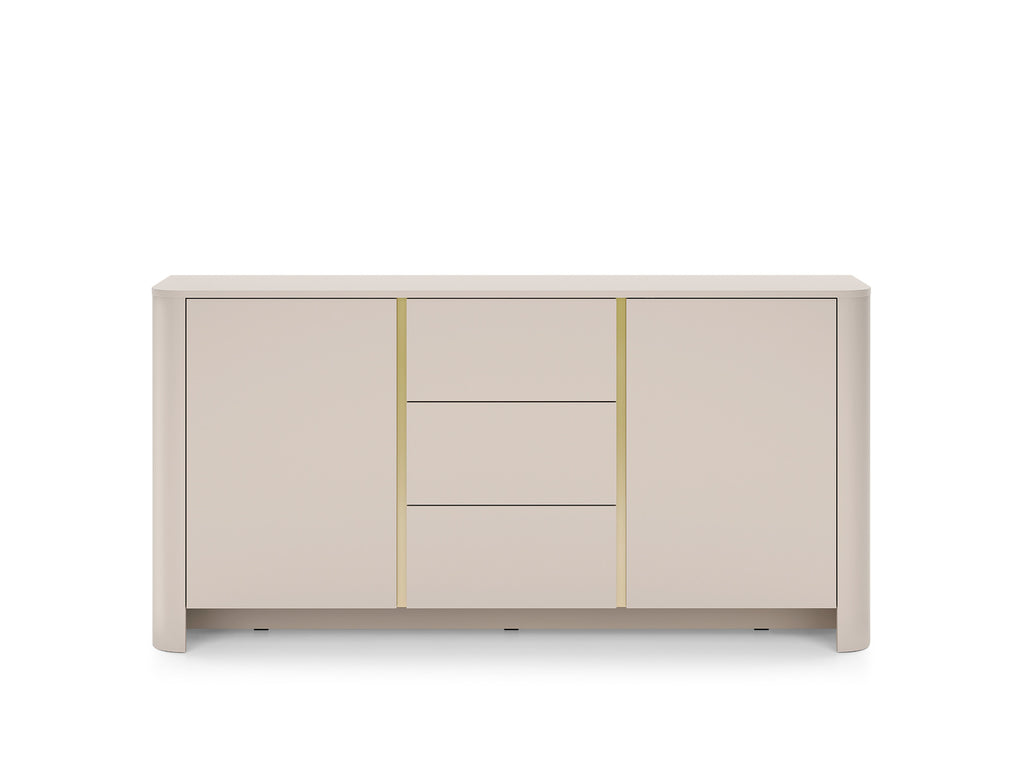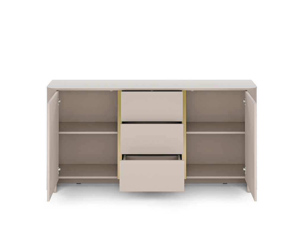 The PI Bari sideboard in cashmere blends sophisticated modern design with practical functionality. With its smooth rounded edges, matte finish, and discreet gold accents, this sideboard is perfect for elegant living rooms or dining spaces. Offering both open and closed storage, it helps you organise your home while enhancing the overall look with its soft-toned, contemporary style.