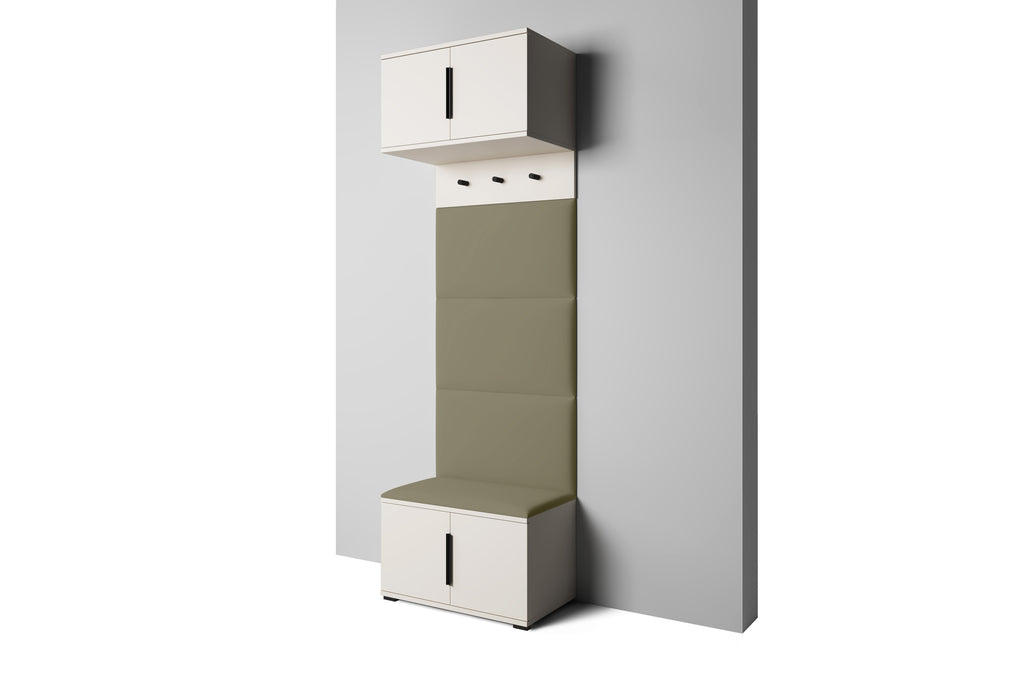The PK Bianco 5 hallway wardrobe set is a smart, space-efficient solution for contemporary entryways. Finished in a warm Cashmere tone with black details, this set combines comfort, utility, and minimalist elegance in one cohesive design.