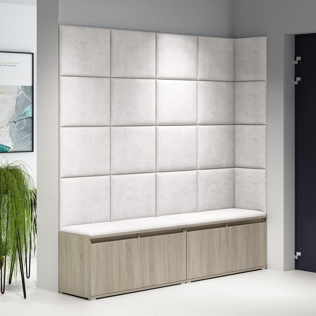 Transform your hallway with the practical and stylish Emi 3 set. Designed to provide ample storage and comfort, this set combines functionality with modern aesthetics. Thanks to its upholstered panels, the Emi 3 not only creates a cosy atmosphere but also adds a soft seating area and a visual accent to your wall. Ideal for large entryways, it offers extensive shoe storage and generous wall coverage with a sleek, built-in look.
