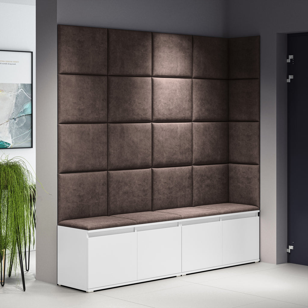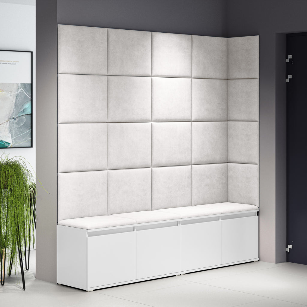 Transform your hallway with the practical and stylish Emi 3 set. Designed to provide ample storage and comfort, this set combines functionality with modern aesthetics. Thanks to its upholstered panels, the Emi 3 not only creates a cosy atmosphere but also adds a soft seating area and a visual accent to your wall. Ideal for large entryways, it offers extensive shoe storage and generous wall coverage with a sleek, built-in look.