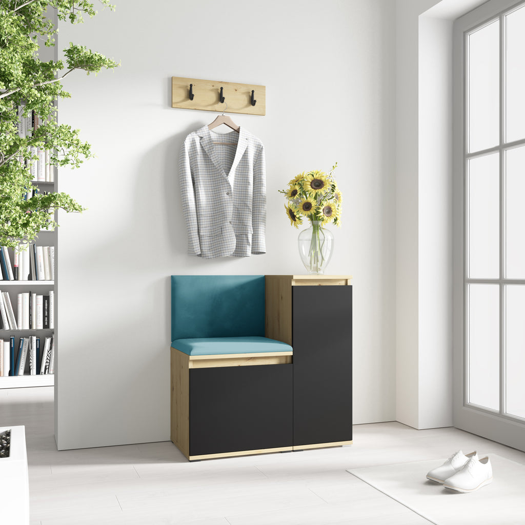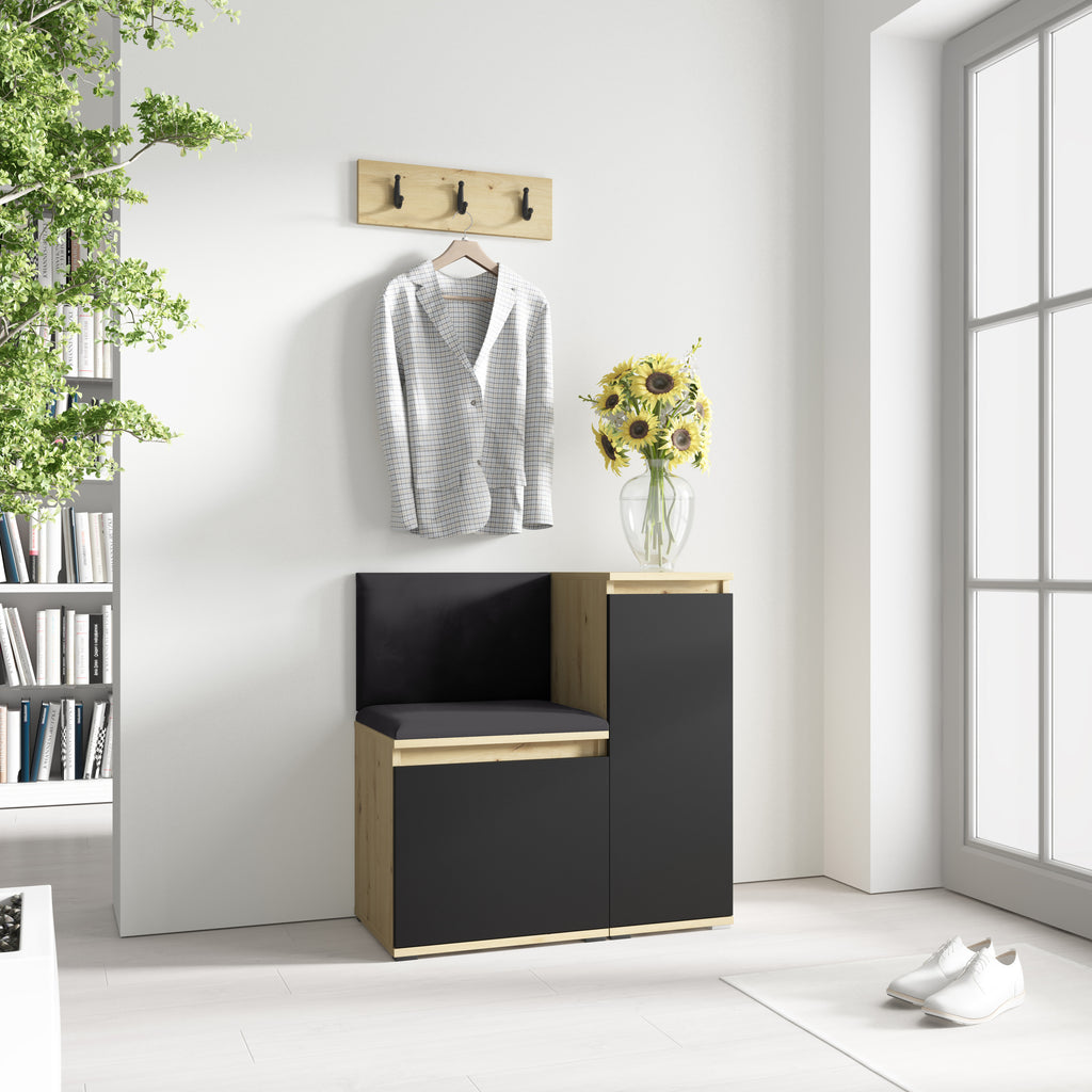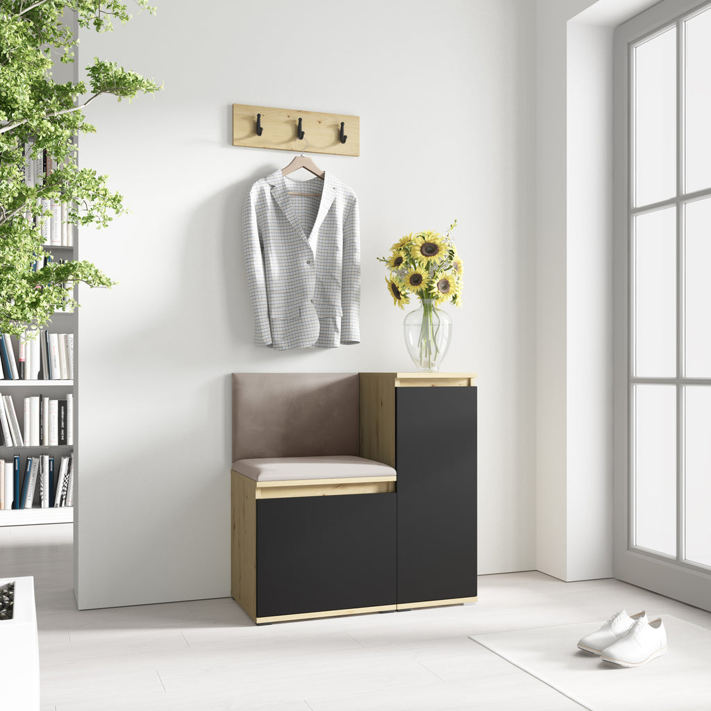 This set is an ideal choice for compact hallways, offering practical storage for shoes and outerwear in a clean, modern form.