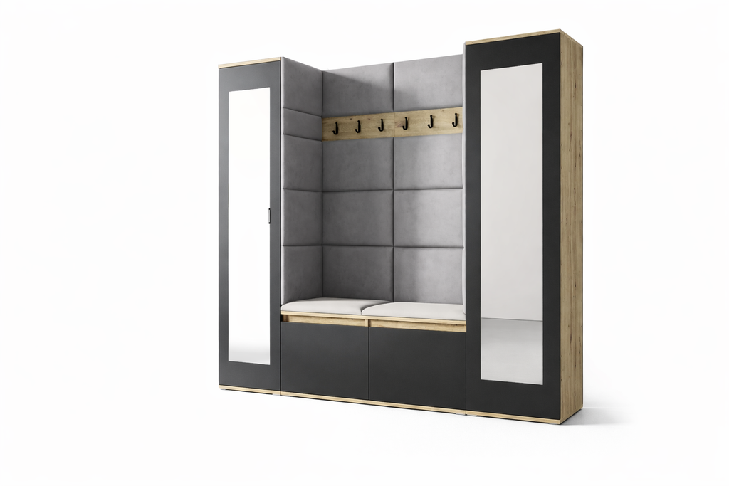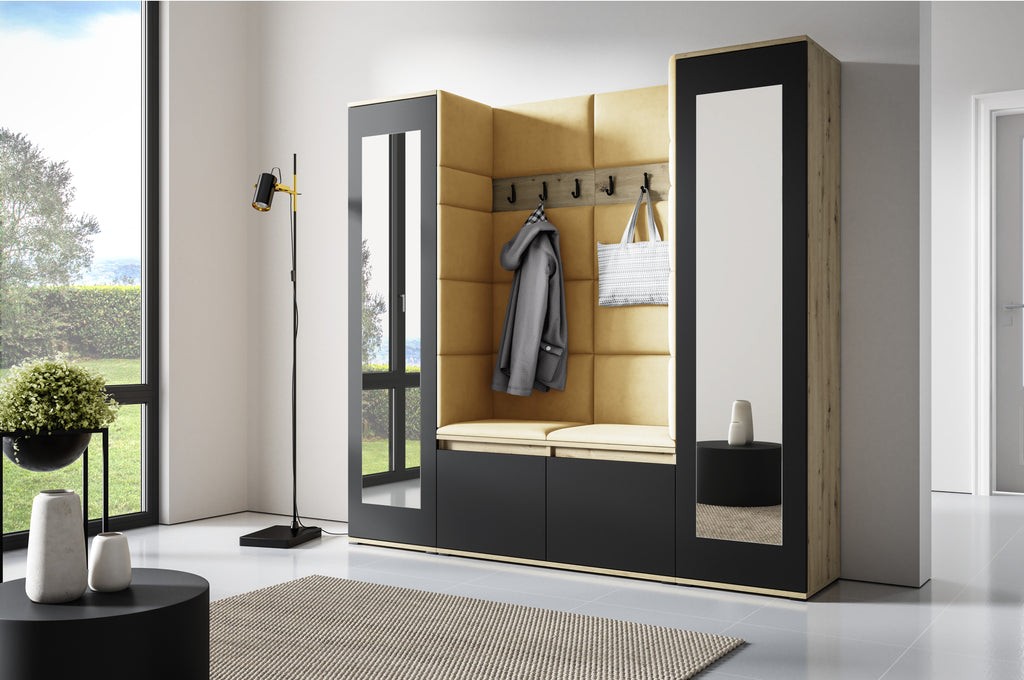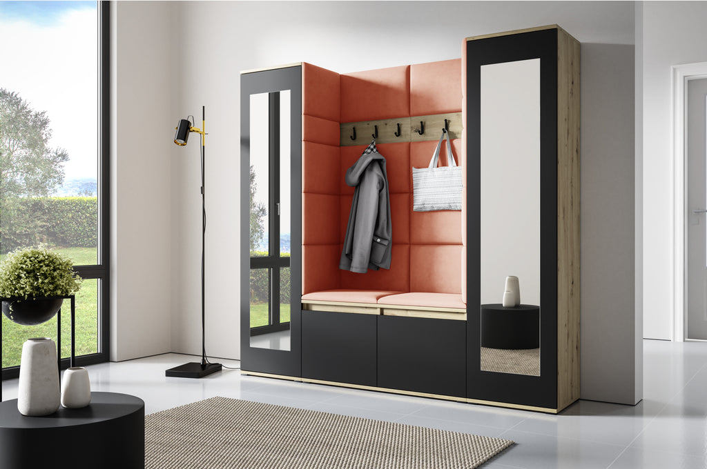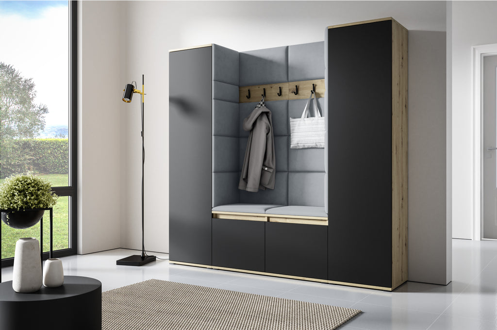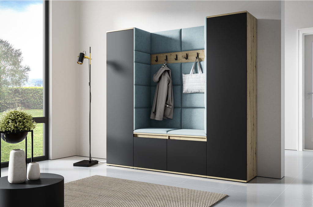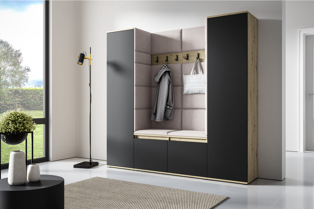 PK Emi 31 Hallway Wardrobe Aristan Oak/Black- Upholstered Panels in Various Colours