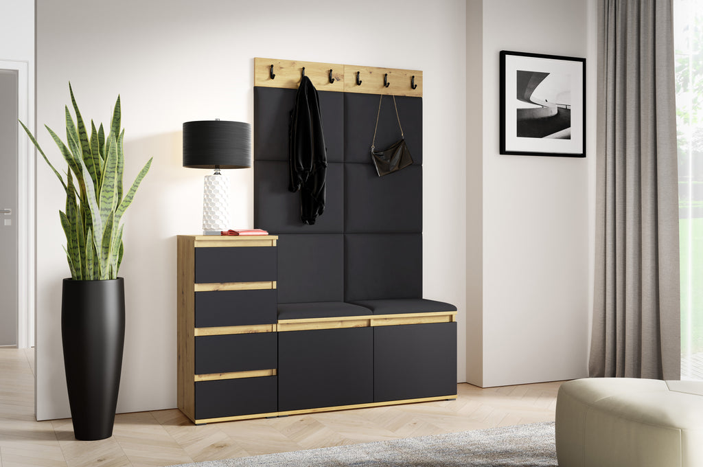 PK Emi 34 Hallway Wardrobe Aristan Oak\Black- Upholstered Panels in Various Colours