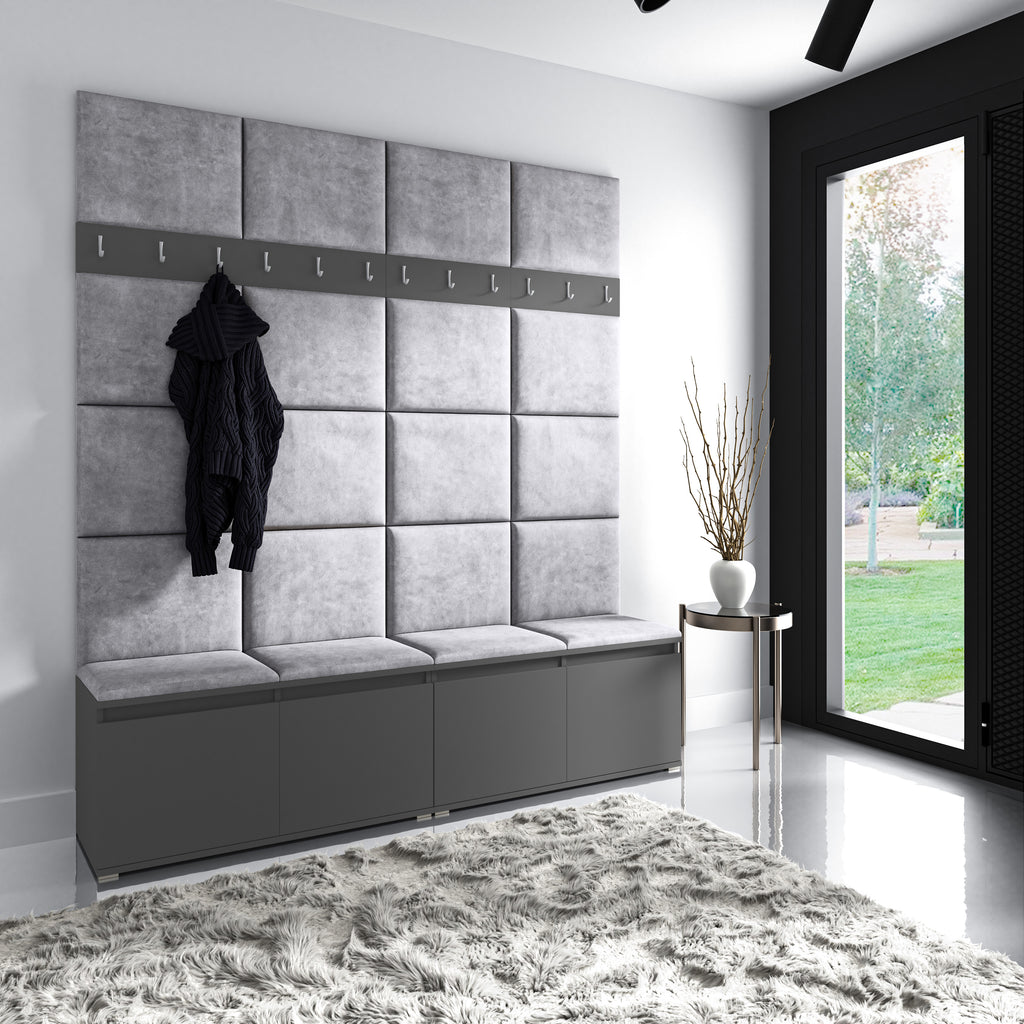 PK Emi 4 Hallway Wardrobe Graphite - Upholstered Panels in Various Colours