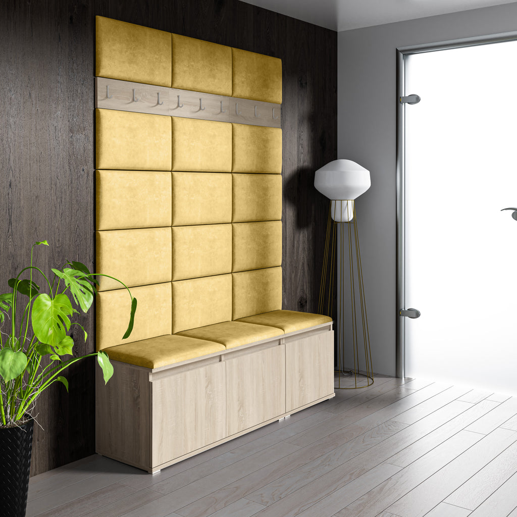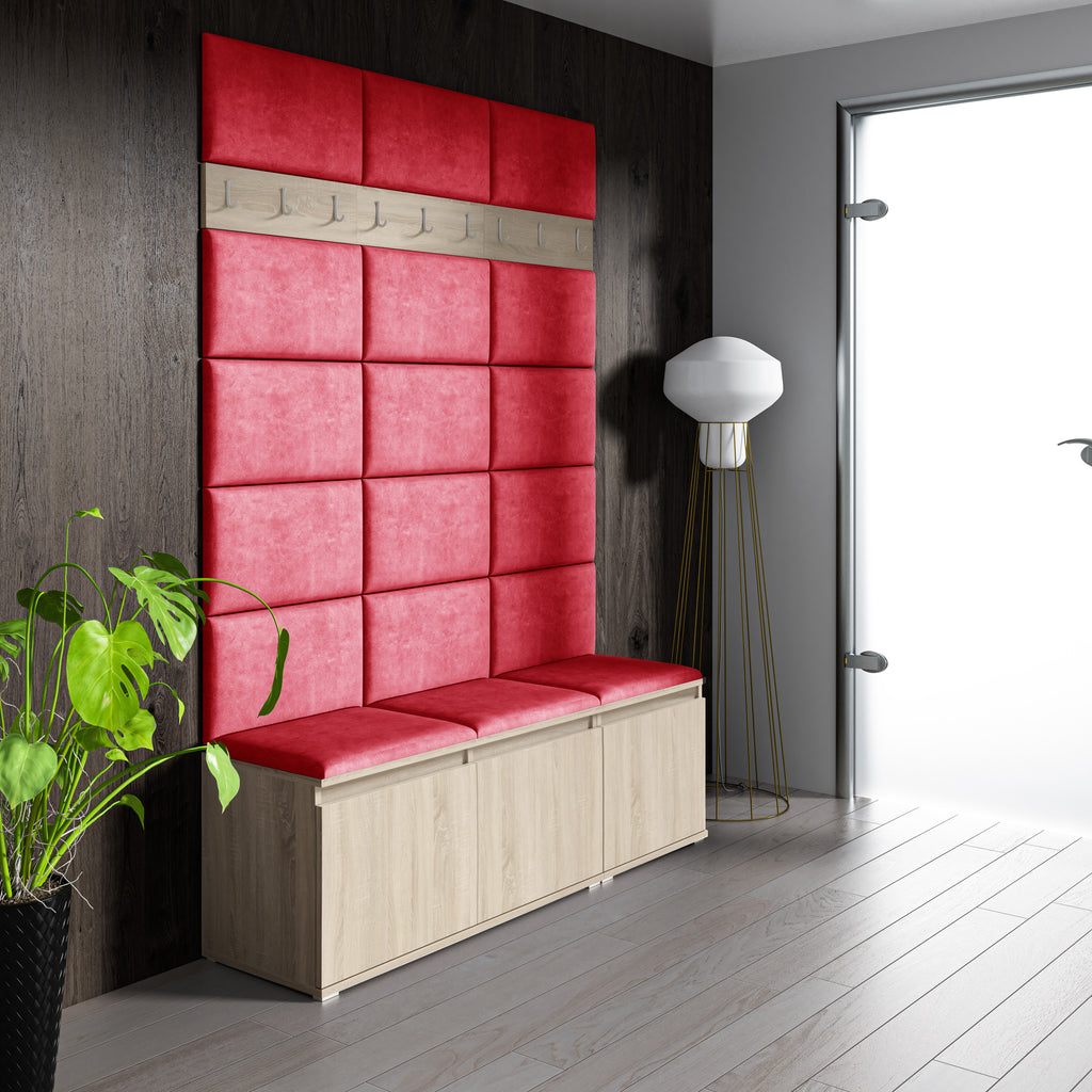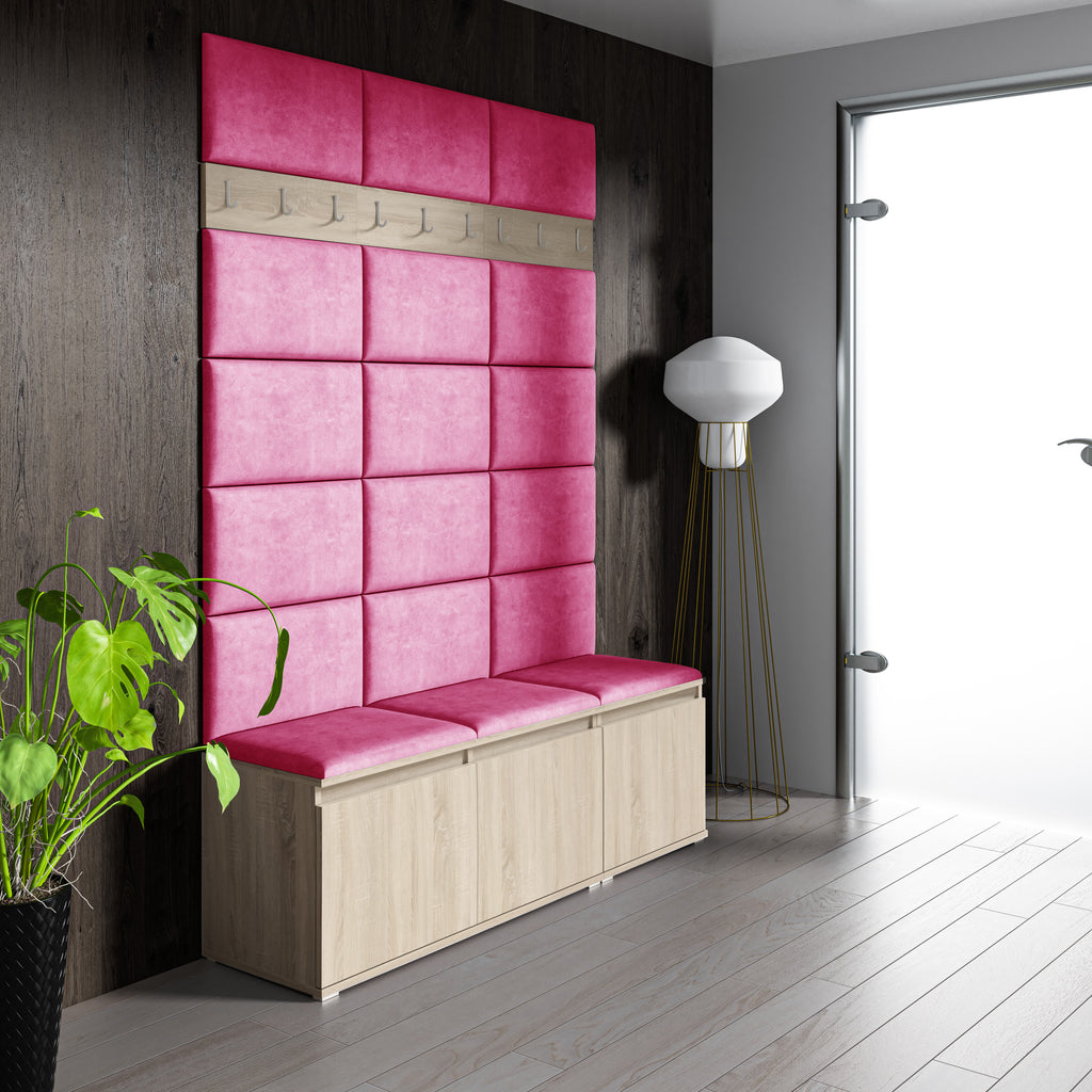The Emi 6 hallway set is a practical and elegant storage solution designed to bring both comfort and style to your entryway. With a wide padded bench, multiple hooks for outerwear, and soft upholstered wall panels, this set combines functionality with visual warmth. Its clean lines and the possibility to choose from various colour options make it easy to integrate into different interiors – whether you prefer modern minimalism or cosy rustic vibes.
