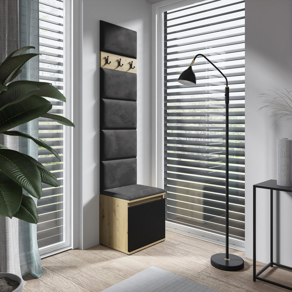 PK Emi 18 Hallway Wardrobe Artisan Oak / Black - Upholstered Panels in Various Colours