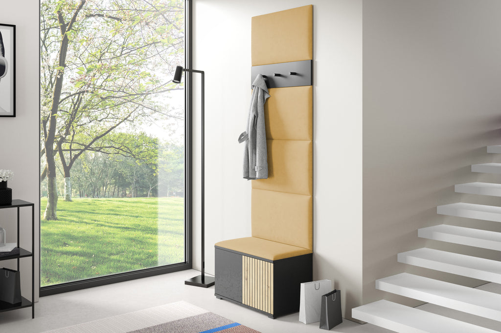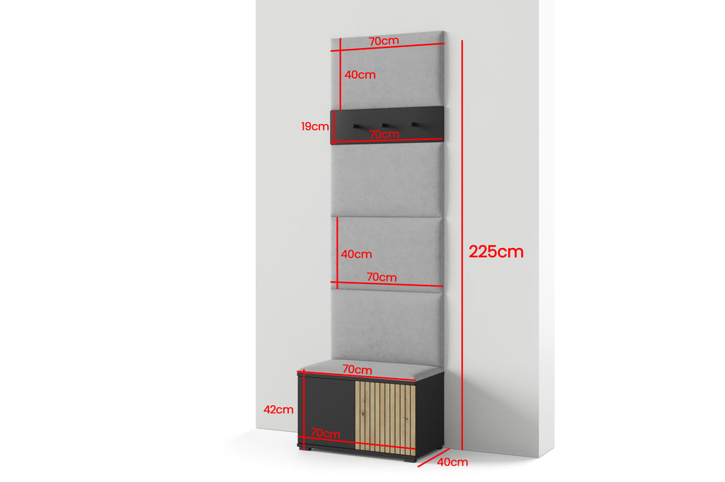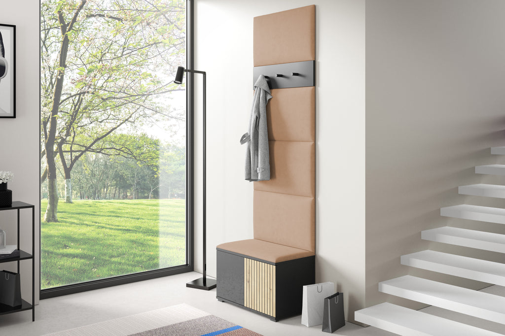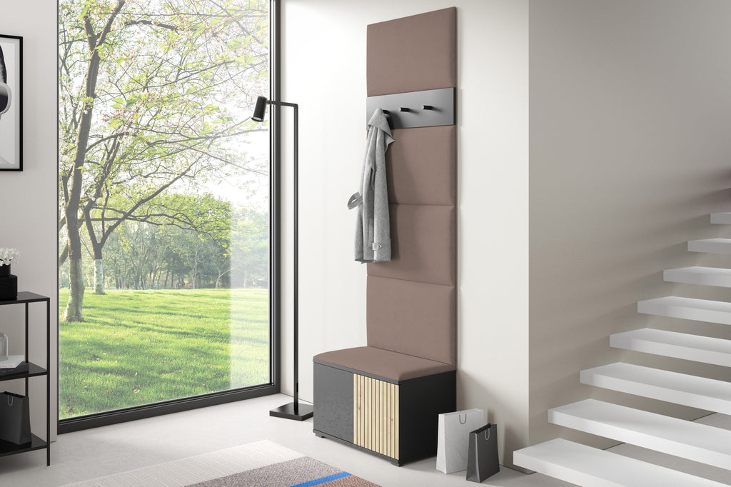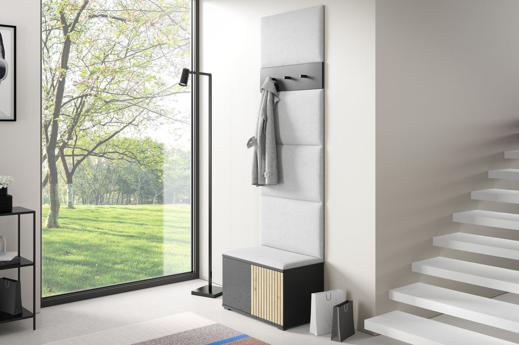The PK Ross 6 is a compact and stylish hallway furniture solution designed for smaller spaces. Featuring a combination of a comfortable seating area, functional shoe cabinet, and wall-mounted hook panel, this set brings together practicality and modern aesthetics. The upholstered panels offer a cosy touch and visual interest.