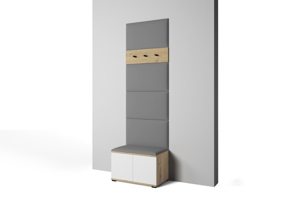 Make the most of your hallway space with the Sevilla Wardrobe – Version 6, a compact and stylish furniture set designed to combine functionality with modern design. With its vertical structure, soft upholstered panels, and practical storage options, this hallway solution ensures that your entrance remains tidy, welcoming, and comfortable. Whether you're putting on shoes, hanging your coat, or storing everyday essentials, this set delivers everything you need in one cohesive unit. Its warm artisan oak and clean white finish make it a perfect fit for contemporary interiors.