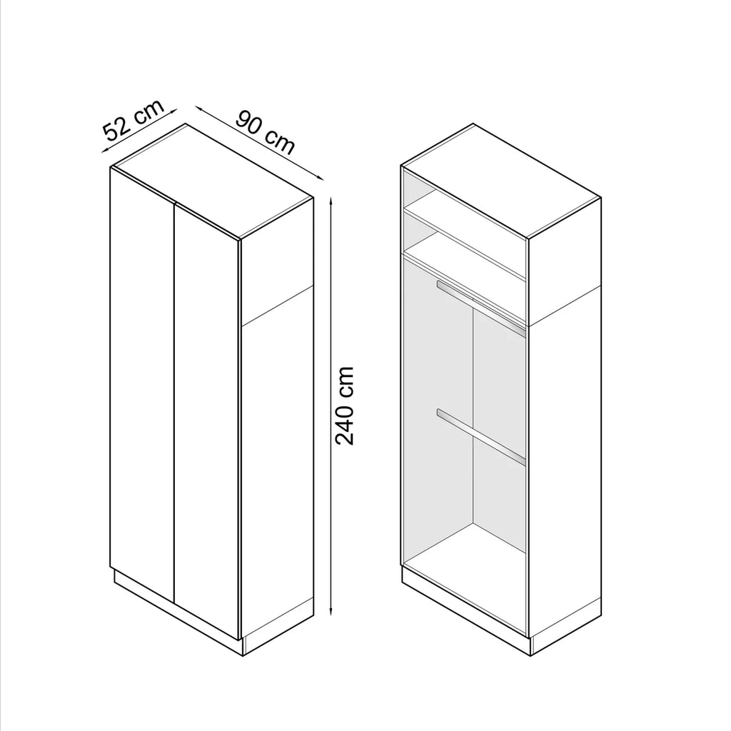2-Door Wardrobe 90 cm with Shelves & Dual Rails – Double-rail wardrobe with upper shelf for added flexibility in clothing organisation. View full product description